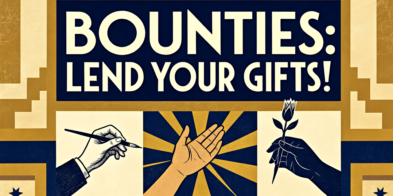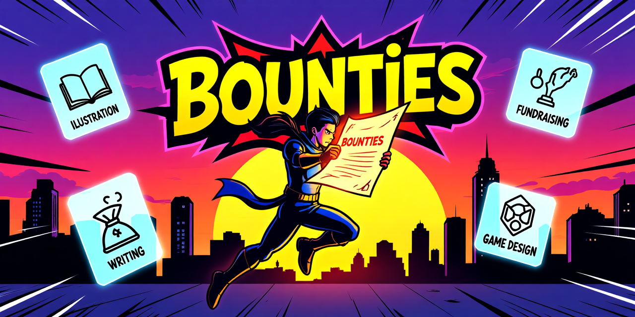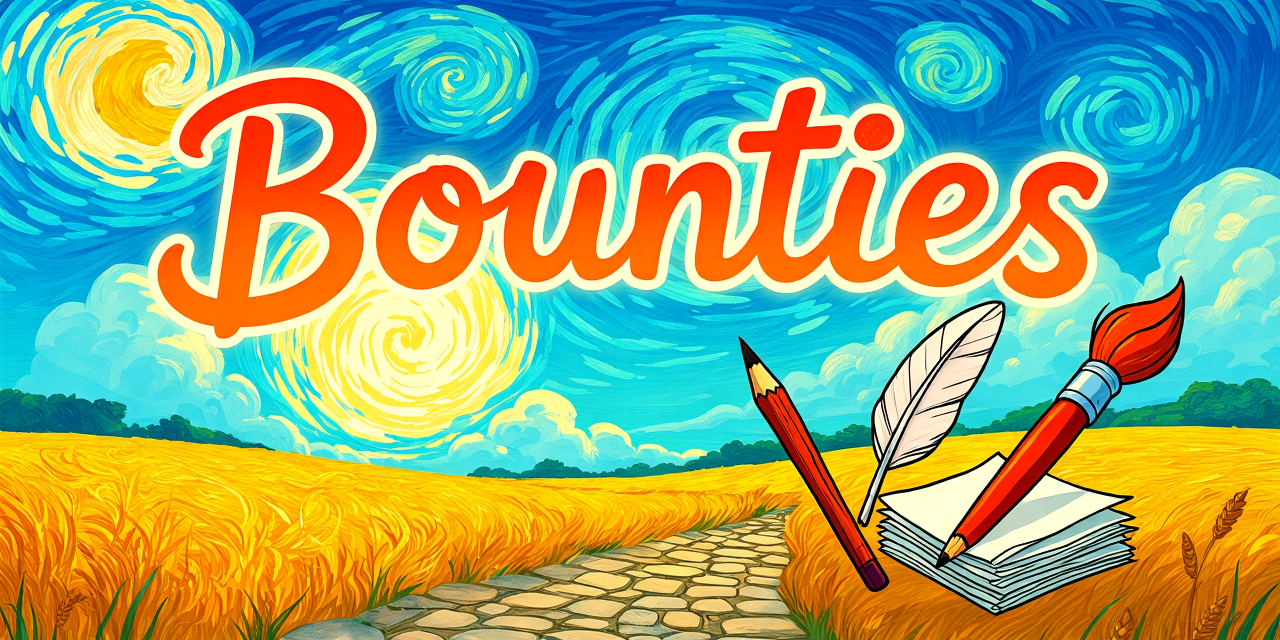 A bounty is a job posting for a small contract – as a “work made for hire” – to produce some content, assets, art, or other intellectual property in a limited amount or limited context but related to the purpose of furthering our ministry. These are – for all intents and purposes – actual jobs we are offering under contract which we intend to pay you for.